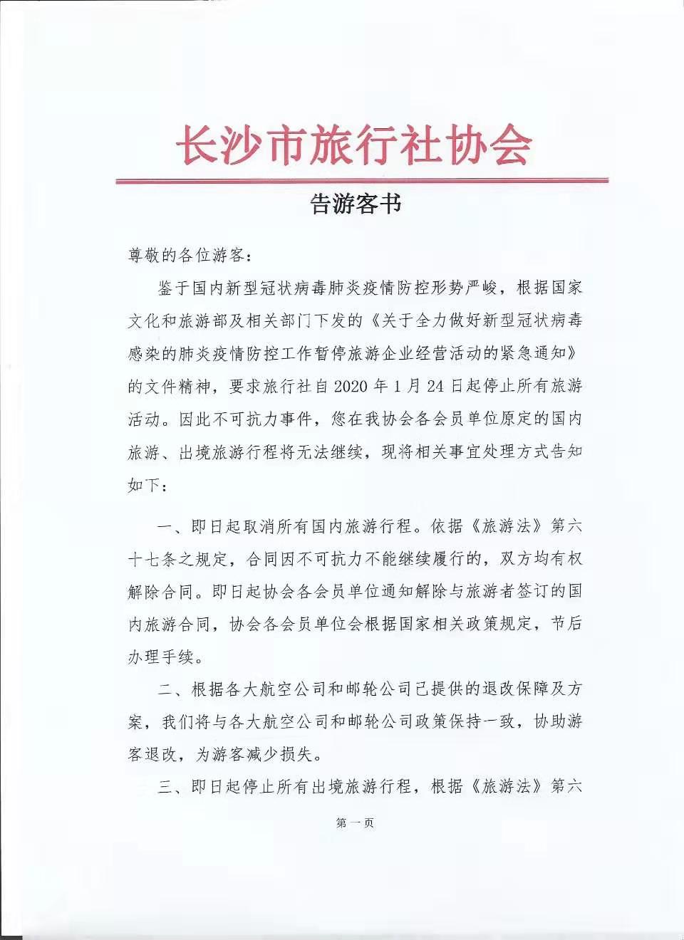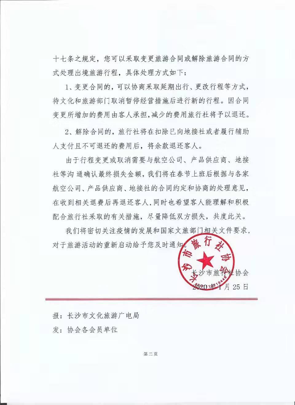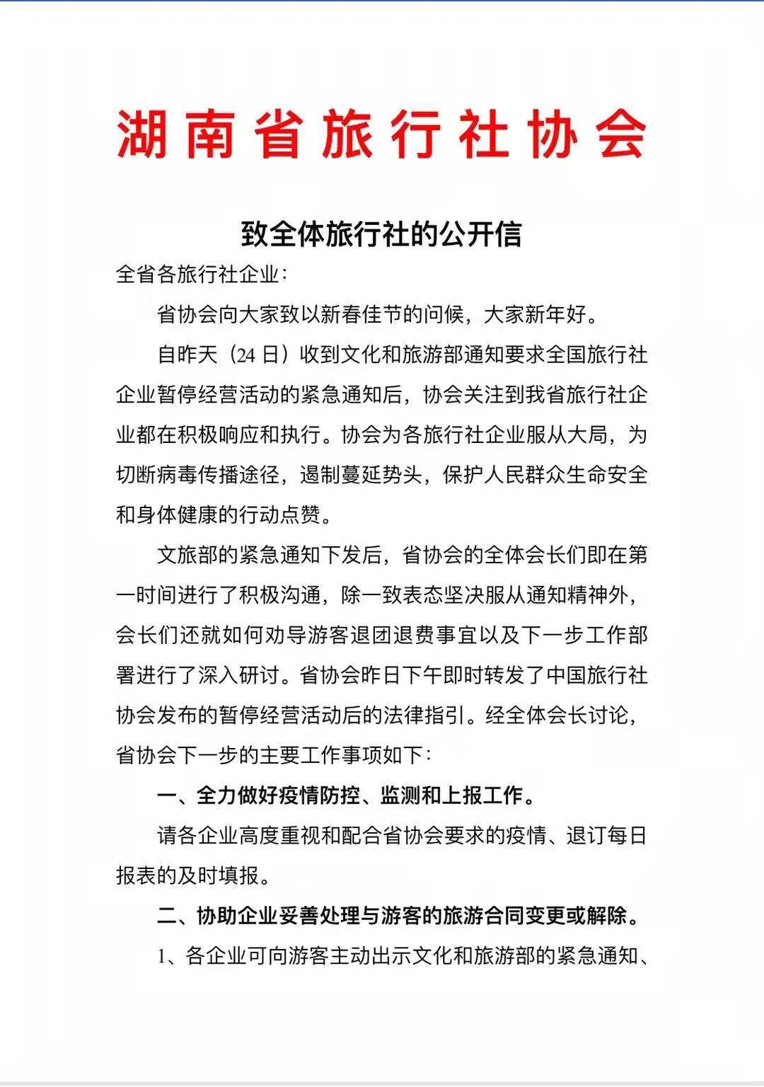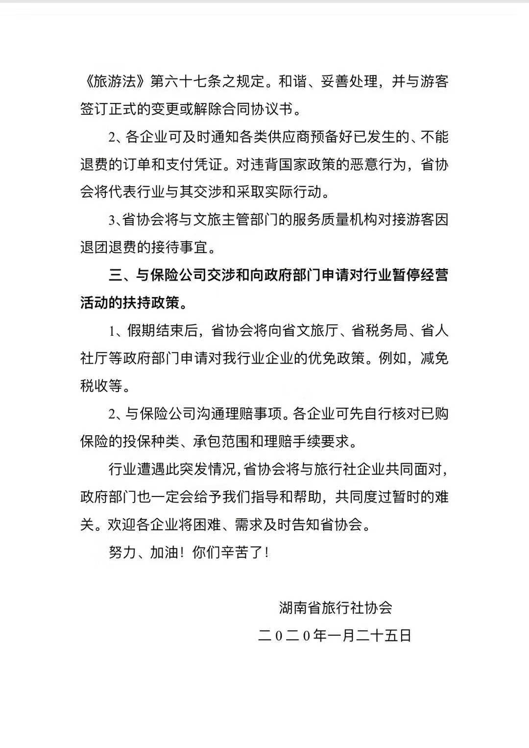为了指导游客和旅游机构之间如何处理旅行团被取消后的后续协商问题,湖南省和长沙市两级旅行社协会都出台了相关通知。