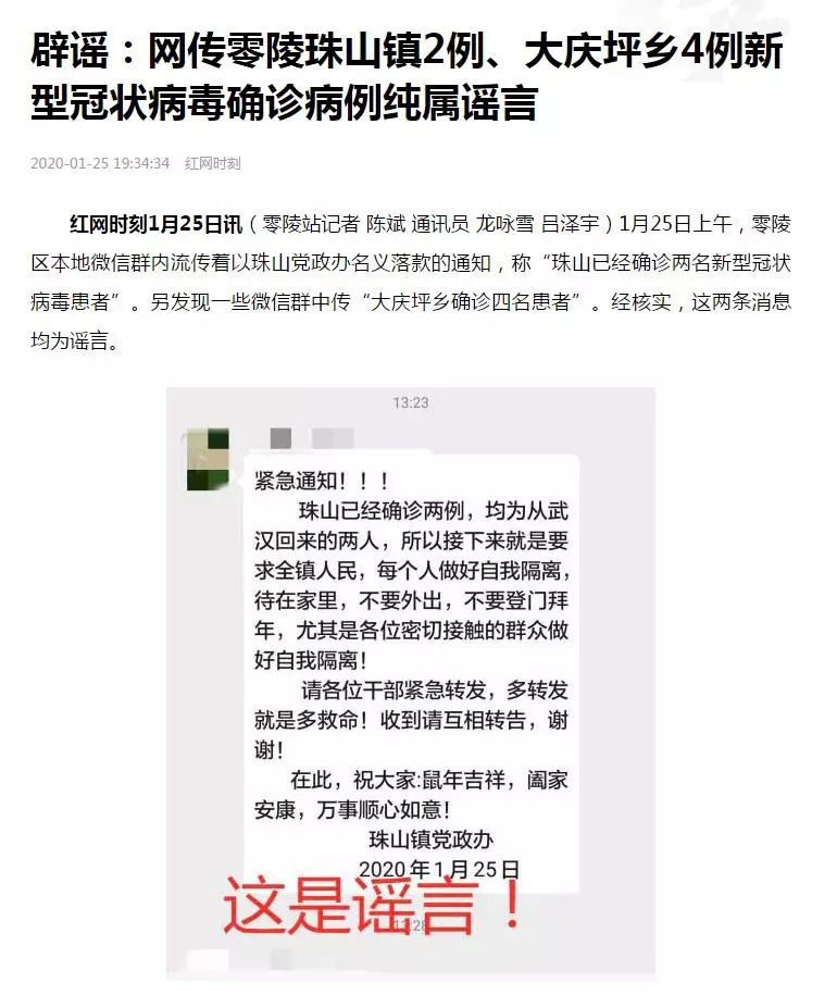 网传珠山镇2例、大庆坪乡4例新型冠状病毒确诊病例,纯属谣言!