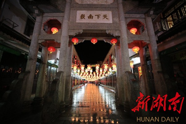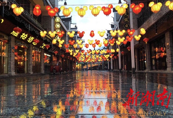 △大年三十晚,南岳大庙附近街景。文兰 摄