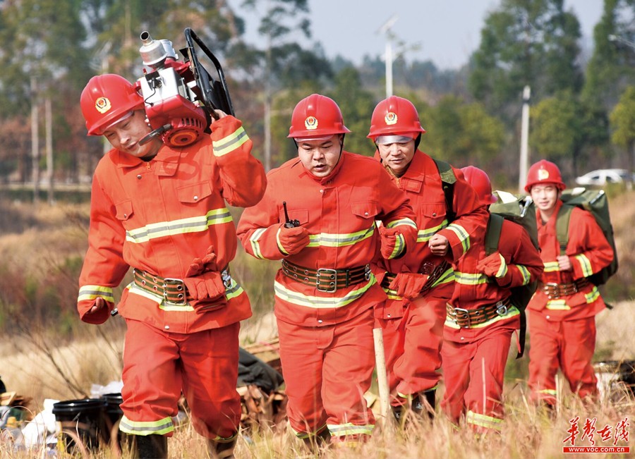 下图:1月21日,嘉禾县珠泉镇马托村山头,消防队员奔赴“山火”现场。