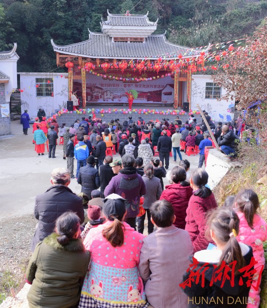 1月19日,冬日暖阳洒在会同县若水镇望东村文化广场。记者一下车,眼前所见,是一张张笑脸。由村民自编自导自演的“村晚”——“我们的节日·春节”暨文化进万家活动,在这里举行。
