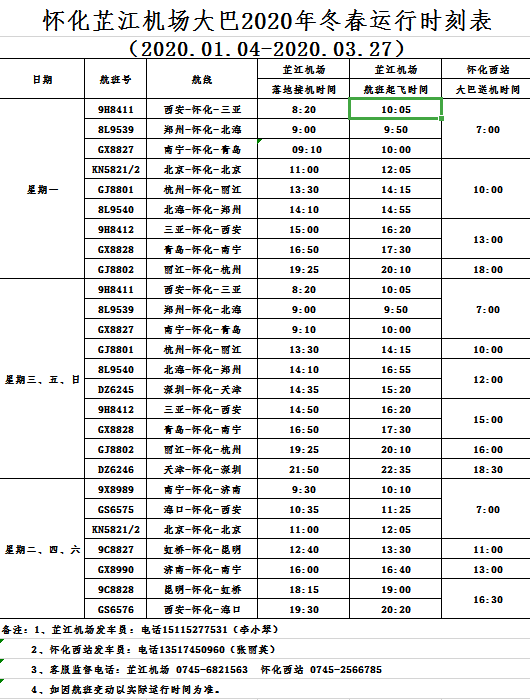怀化机场现已开通芷江县城到机场9路公交车,公交行驶线路为:芷江机场-富华新城-湘运汽车站-中医院-县政府-舞水新城-农贸市场-交通局-河西车站-晓坪路口-税务局-三里坪加油站-芷江机场。