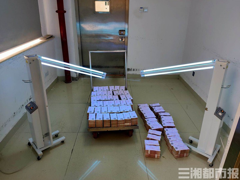 为该行提供现金清分等服务的是湖南丰汇银佳科技股份有限公司,公司湖南服务中心经理邓立军介绍,这批正在消毒的现金,是银行回笼的现金。为避免紫外线灯对人造成伤害,工作人员是在库外操作电源,通过监控确认紫外线灯的开关情况。消毒结束关闭紫外线灯后,工作人员还会将钞票封装在袋子里“隔离14天”。丰汇银佳在北京、上海、湖南、湖北等十余个省(自治区、直辖市)均有服务团队,为人民银行以及50余家商业银行提供金融外包服务,疫情期间已累计为600多亿元现金进行消毒。