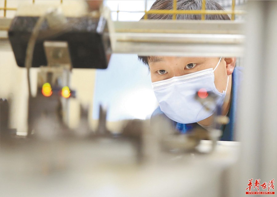 2月24日,衡阳市雁峰区南岳电控工业有限公司生产车间,工人在精心生产。该区及时组织企业有序复工复产,助力经济发展。 曹正平 摄