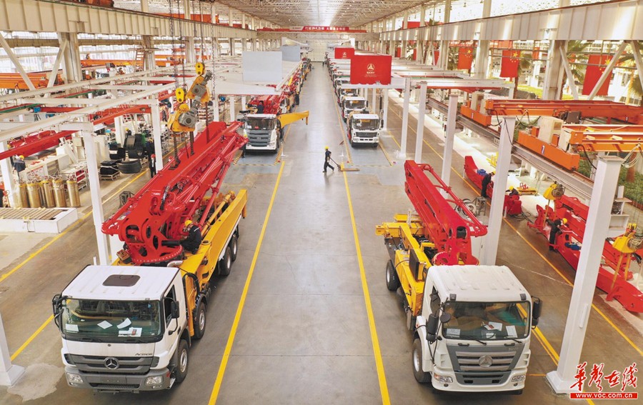 此刻,请听,三湘大地正在演奏着最动听的交响乐:建设工地、生产车间,工人正辛勤忙碌;钢铁厂区,炉火正旺,传送带上钢板红得灼目;物流园里,车辆穿梭,一派繁忙……