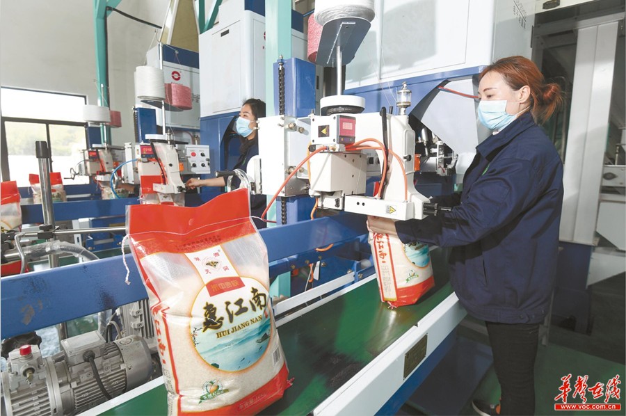 2月24日,湘阴县高新区湖南金惠农业科技发展有限公司,工人在加工大米。该公司积极做好防疫,恢复生产确保市场供应。目前,已供应省内外市场优质大米1800多吨,还捐助了20吨优质大米直供湖北黄冈。