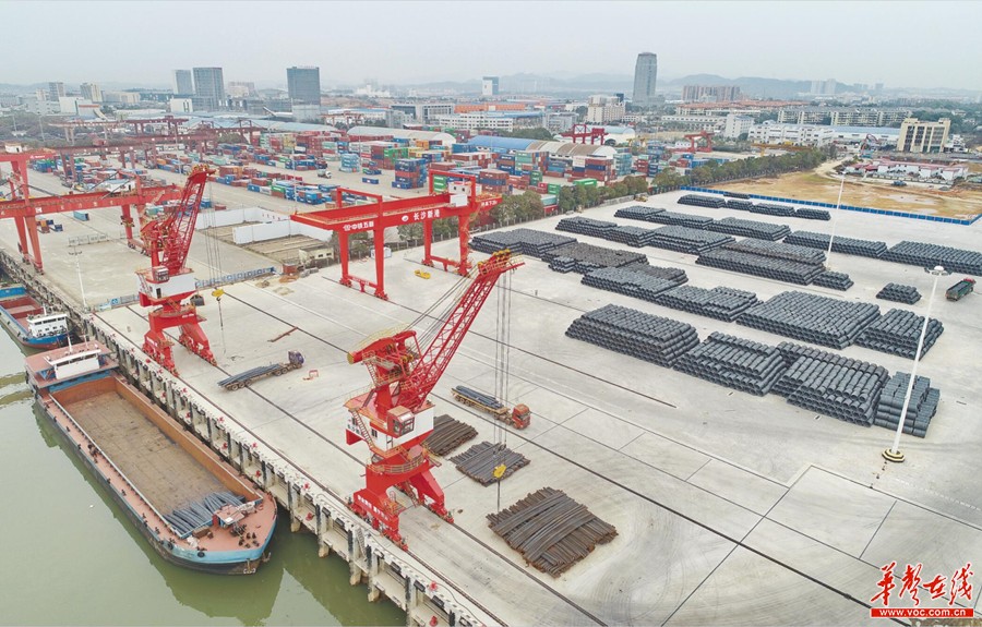 2月25日,长沙新港码头堆场,钢材库存量创下建港以来历史新高。从2月6日开始,新港公司及时组织对集装箱、钢材、矿石、原材料等重点物资装卸。目前,已吞吐货物31万吨。