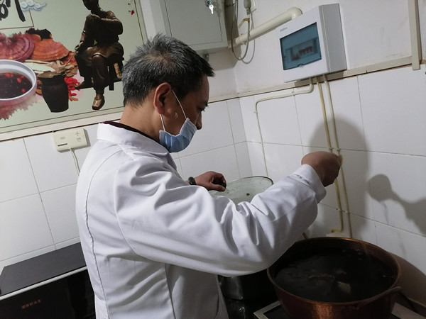 张剑文告诉记者,每天一大早,中医馆的医护人员就忙碌起来,取药、称药、配药,用古法铜锅熬制2个小时后,会招呼附近的居民免费领取中药。