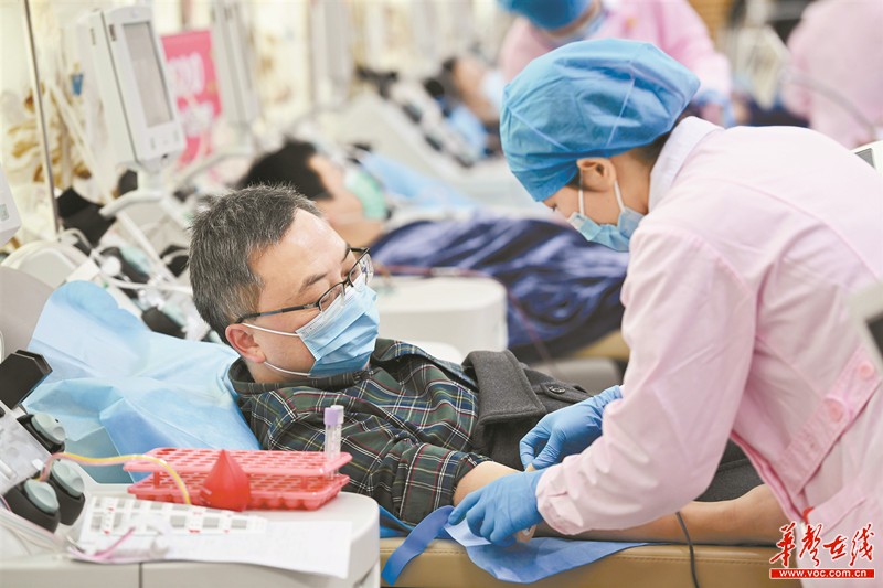 2月23日上午,长沙市疫情防控指挥部办公室各组负责人走入长沙血液中心机采科,参与无偿献血。新冠肺炎疫情发生以来,长沙市无偿献血工作受到严重影响。近日,长沙市启动血液库存一级预警。市疫情防控指挥部下发通知,号召全市各级机关、企事业单位、部省属驻长单位的党员干部职工和广大市民通过精准预约的方式,分点、分时踊跃参与无偿献血。