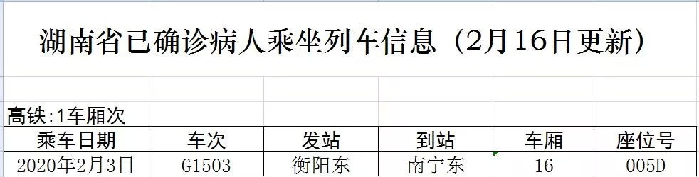 附件:湖南省已确诊病人乘坐列车及信息(2月16日更新)