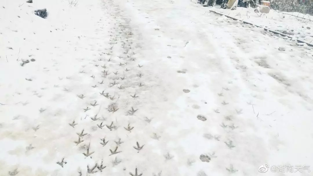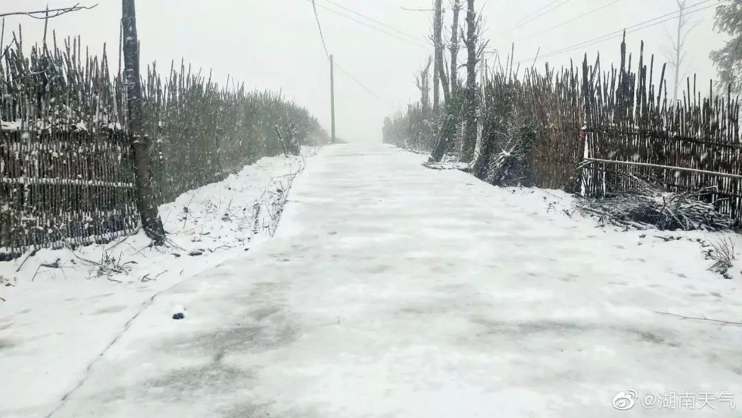 此外,在湖南省湘西土家族苗族自治州龙山县的里耶镇天堂村也飘起雪花,厚厚的雪将小山村静静覆盖,呈现一片雪白的美丽景象。