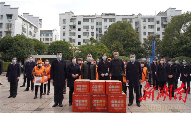 华声在线2月14日讯(湖南日报·华声在线记者 王文 通讯员 谢鹏 王亮)2月14日是情人节,浏阳市市容环境卫生维护中心收到一份特殊的礼物,由长沙银行浏阳支行党支部捐赠的1000份防疫中药和2000双手套。