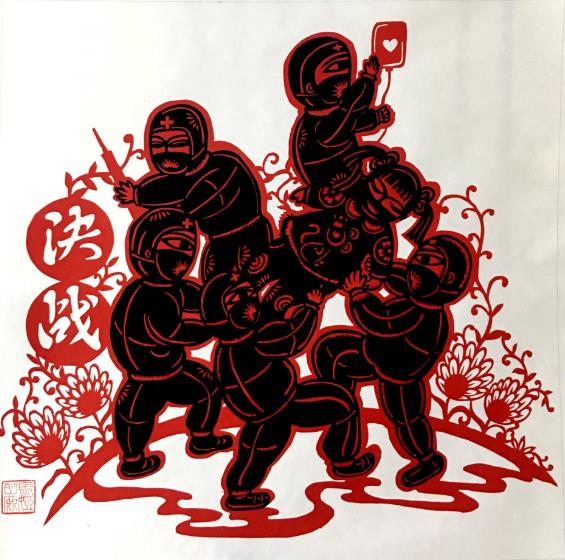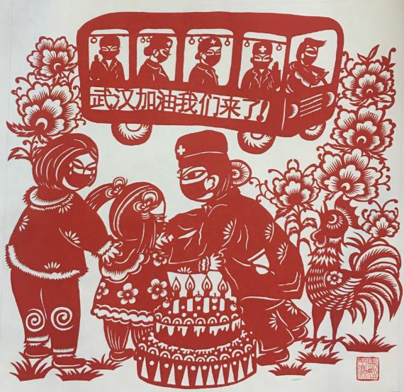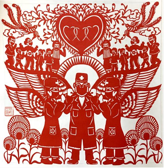 新冠肺炎发生以来,邵阳地区全民齐心抗疫,马丽娅作为邵阳市非物质文化遗产剪纸艺术传承人,时刻关注着来自“抗疫”战场上的消息,关心着冲锋在前的白衣天使们和所有一线“抗疫”人员。她和女儿积极创作,鼓励学生们参与,希望用剪纸艺术传递战“疫”力量。