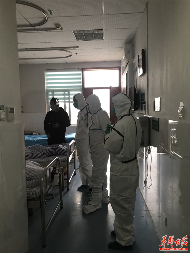 杨浩(中)在指导基层医院发热门诊做好防控措施