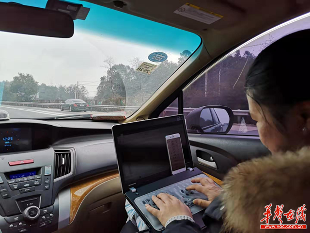 在高速路上,孙倩莱抓紧时间、“移动办公”