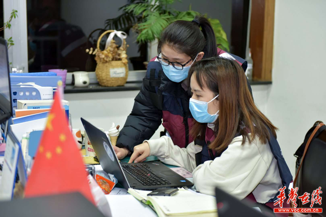 深夜,赵善露(左)和戴志辉一起讨论疫情应对