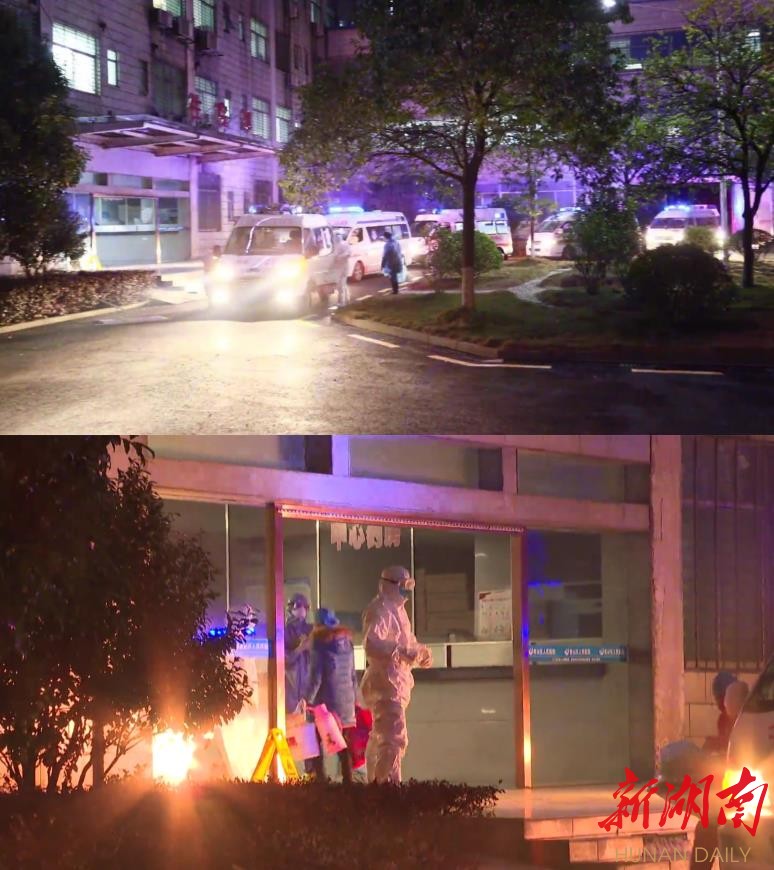 2月5日19时,18名来自华容县和临湘市的新冠肺炎患者陆续从救护车上下来。两名“全副武装”的医护人员迅疾接入病房。医生彭小辉、向迪凯和李当、周莎、李秋萍、龙凤等8名护士也早已穿戴好防护服、护目镜,准备进去。