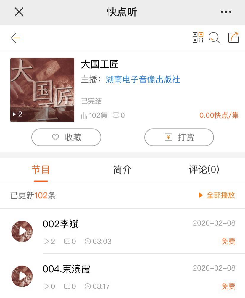 7. 湖南电子音像出版社《改革开放四十年:那些年,那些人,那些事》《大国工匠》《红色传家宝》等听书产品以及《榜样》等视频产品
