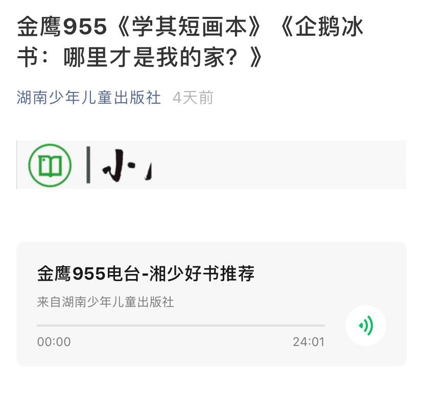 11. 湖南少年儿童出版社《企鹅冰书:哪里才是我的家?》《学其短画本》有声读物
