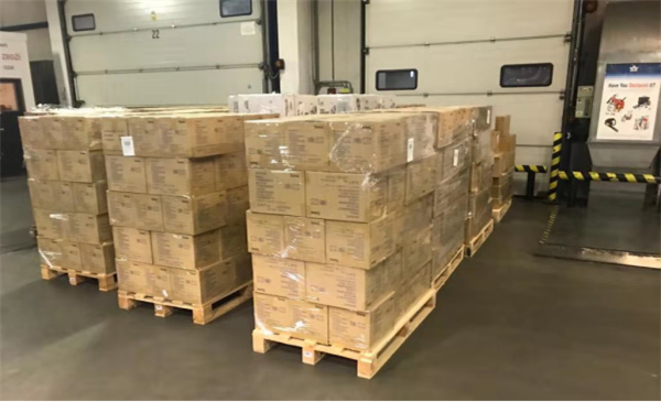 捷信捐赠的医用防护物资在布拉格机场准备装箱发往中国