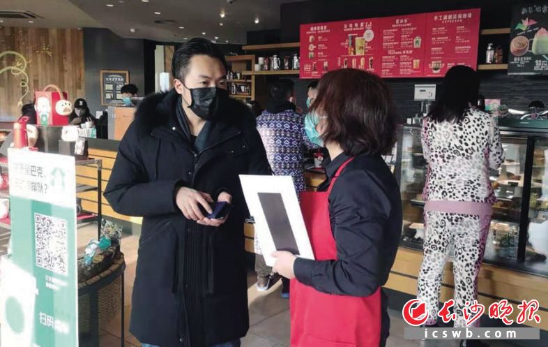 彭宇航在防疫期间对辖区内复业的门店每天进行上门巡查。长沙晚报全媒体记者 周辉霞 摄