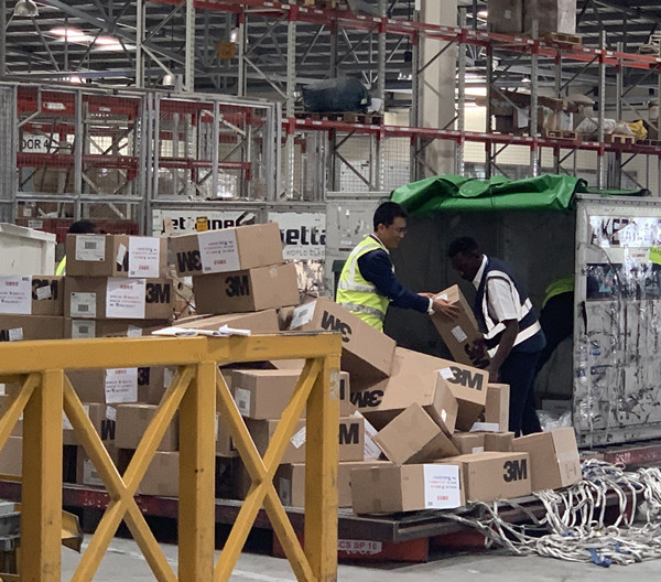 集团肯尼亚办事处负责人詹炜当时还远在布隆迪出差,当得知国内情况后,他立马把手机中能联系到的人都联系了一遍,经过不懈搜索,1月31日终于找到了一家厂商。防疫医疗物资的货源有了着落后,詹炜怕晚到就被抢购一空,便冒着暴雨连夜驱车3个小时从布隆迪赶回肯尼亚内罗毕,在厂商上班后第一时间“抢购”了1万只N95口罩,与此同时紧急联系了运输车、报关员以及飞往长沙的航班等,后续流程一刻也没耽误,基本上24小时连轴转,争分夺秒地打包、运输物资,最终这一批防疫医疗物资于2月3日早晨运抵长沙。