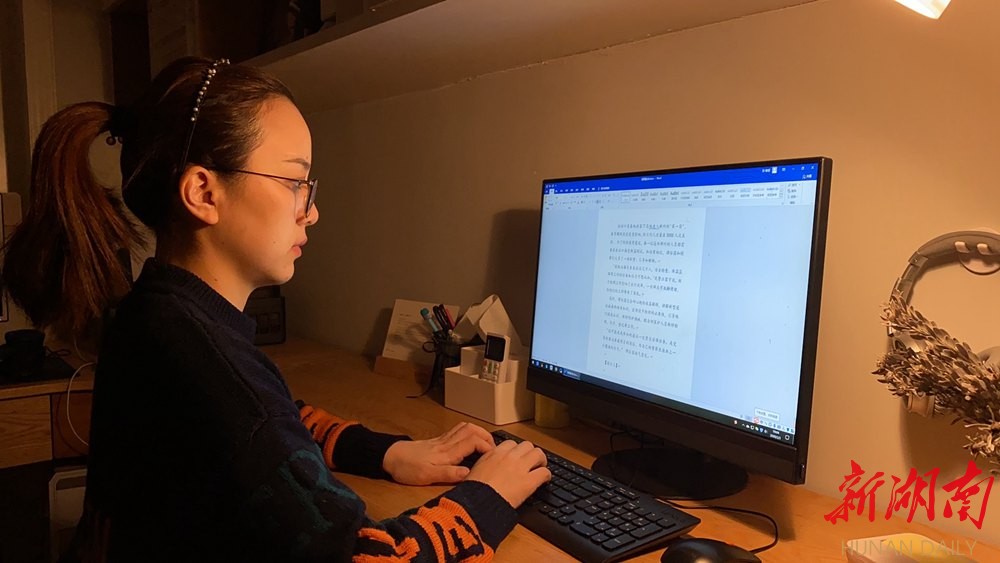 段涵敏2月3日采访的主题,是大家最关心的事。“湖南有足够的收治能力吗?患者的救治有保障吗?……”她在电脑上敲下了这些字,一边翻看采访笔记和资料,一边专心致志地写稿。在她看来,公开、透明的信息是防疫很关键的一步,作为新闻工作者,虽然每天“忙成狗”,但能为打赢这场硬仗做点力所能及的事情,很有获得感。