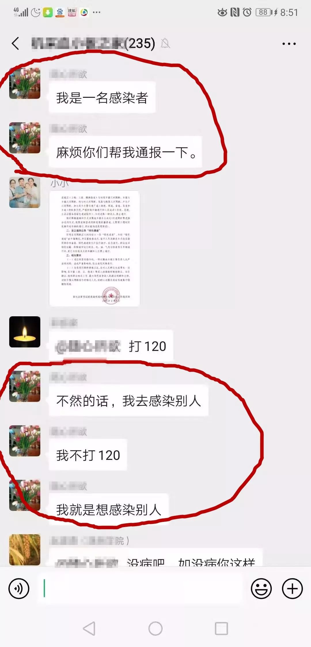 2月2日,娄星公安分局水洞底派出所接到水洞底镇疫情指挥部举报:有网民在某微信群故意发布“我是一名(新冠肺炎)感染者”“我就想感染别人”“进去(公安局)就进去呗”“反正我想进去(公安局)”等一系列引发社会恐慌的言论。接到举报后,该所立即组织警力开展调查,并于当天抓获嫌疑人邓某(男,28岁,水洞底镇人)。经审讯,邓某既不是湖北返乡人员,也没有和湖北或湖北返乡人员接触。2019年10月其到湘潭打工,2020年1月初返回娄底,之后并未离开过娄底。为进一步核实邓某身体状况,娄底市中心医院对其进行了检查,检查结果为身体状况良好,未见异常。