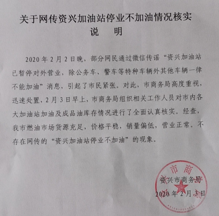 2020年2月2日,资兴市委网信办接到群众网络谣言举报。