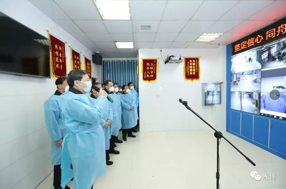 2月1日下午,省委书记杜家毫赴衡阳检查指导疫情防控工作。在南华大学附属第一医院,杜家毫通过视频连线看望慰问患者和一线医护人员。