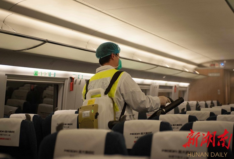 自1月20日起,长沙铁路疾控中心医务人员每日对所有回到湖南的高铁、普铁列车进行消毒,并督查省内各大普铁站、高铁站进行消毒处理,保障旅客和铁路工作人员安全出行。