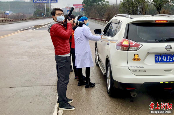 从大年三十至今,记者罗盟几乎没有完整地休息过一天。在回家吃年夜饭的前几个小时,还跟高新区的志愿者和医护人员排查外地车辆的新闻。期间,遇到武汉来衡的车辆,丝毫没有畏惧,主动向前拍摄,记录新闻第一现场。带病坚持工作的他,面对彭斌的关心,他坚定地说:“我还没结婚,没有什么牵挂,可以继续坚持!”