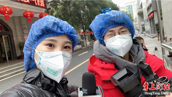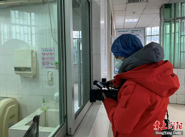 记者敖文景虽为“女将”,却勇于做一名防控一线的“花木兰”,在大年初二主动联系南华附一的医务人员,无畏风险,赶赴“疫情最前线”——发热门诊采访,挖掘医护人员感人的故事。紧接着,她又到珠晖区的疫源地人员指定服务场所,采访正在隔离的16名武汉人,“两湖一家亲,武汉加油,衡阳加油!”现场的感人气氛,激励着她继续在新闻路上奔走。