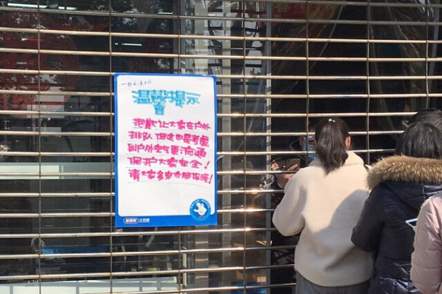 首先走访的是位于联美品格小区大门口的养天和大药房。店门口公示:本店口罩、酒精、84消毒液已经售完。“口罩昨天还有100个,但今天还没有来货,可能要下午5点多。”工作人员表示,这几天公司陆续会配送一些口罩,但数量比较少。店里限定每人只能买3个,通常是刚刚到货,一个多小时就会卖完。