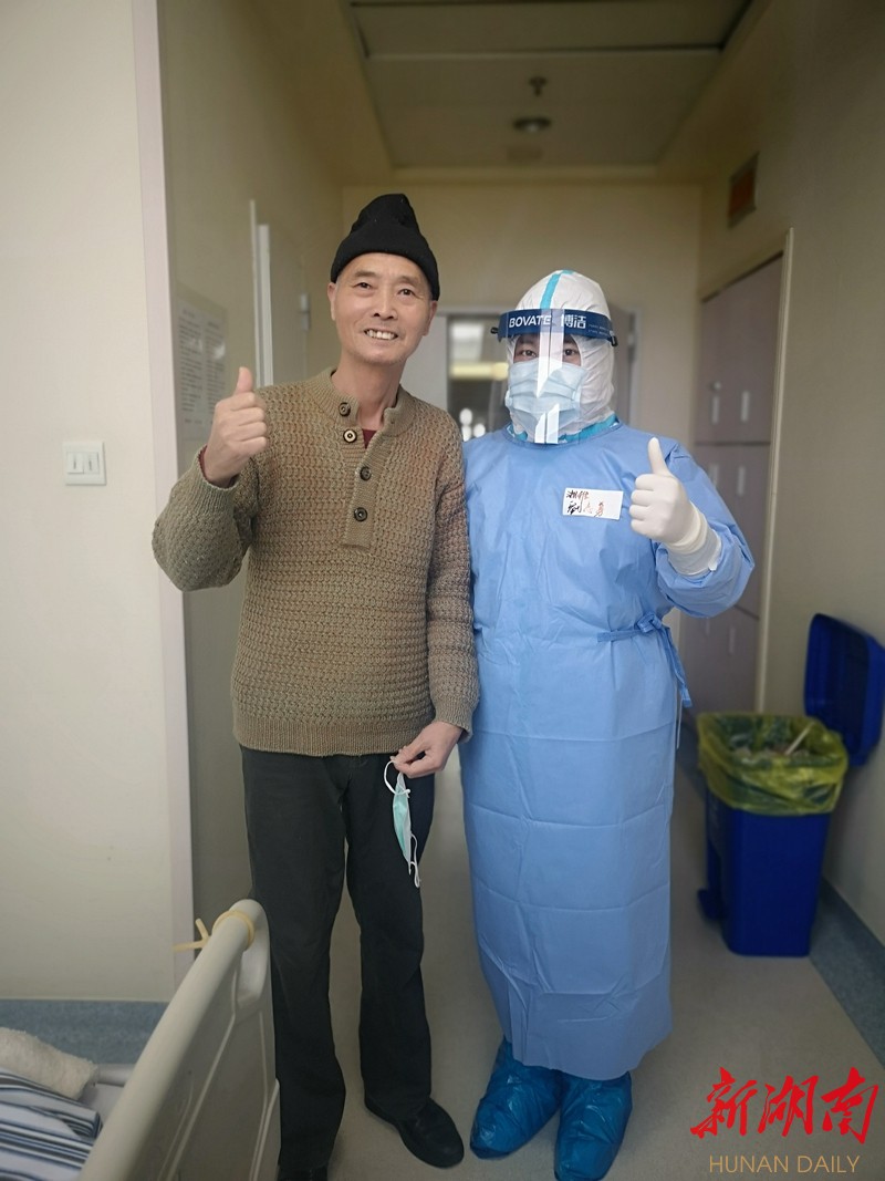 昨天接到4月1日撤离的通知,刘志勇和其他队员一刻也没有闲着。今天上午是最后一班岗,大家把湘雅病区现有的23个病人进行了交接,一部分出院,一部分转到其他病区。93岁的刘奶奶和94岁的尚奶奶也分别和家人通了视频,两个人刚住进医院都是昏迷的,现在能视频通话了,家人都很开心。