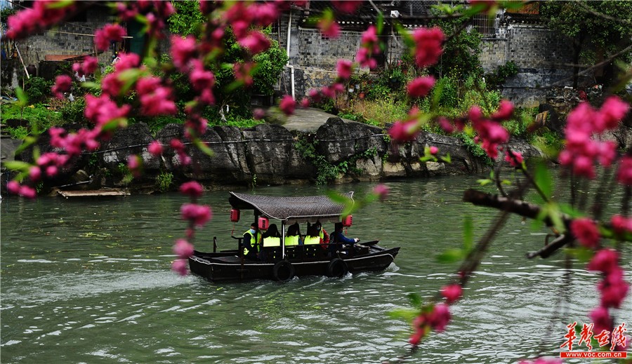3月29日,游人在吉首市乾州古城万溶江上泛舟游览。该古城实行间隔性进“城”、分散式游览,让游客尽情地感受历史文化,享受美丽的古城风光。姚方 摄