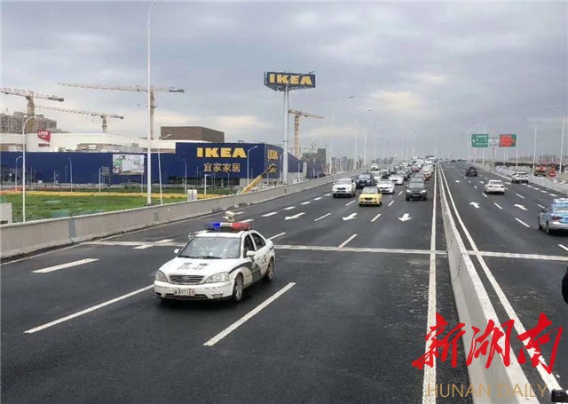 记者在现场体验,以60公里/小时速度驾车,从新开铺路上湘府路大桥,一路往西行驶,到达罗家嘴立交桥,用时仅需5分钟。