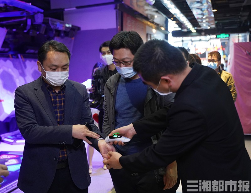 深夜的长沙解放西路,在疫情控制后,人气逐渐复苏,街上撸串、购物的年轻身影开始增多。记者跟随检查人员走访了酒蜗KTV、纯K KTV等娱乐场所,当这些娱乐场所开门试营业之际,不少年轻男女也跟着进来消费。当然,他们都得经过多道严格检查,如测体温、手鞋消毒、登记健康卡等工序,一个都不能少。