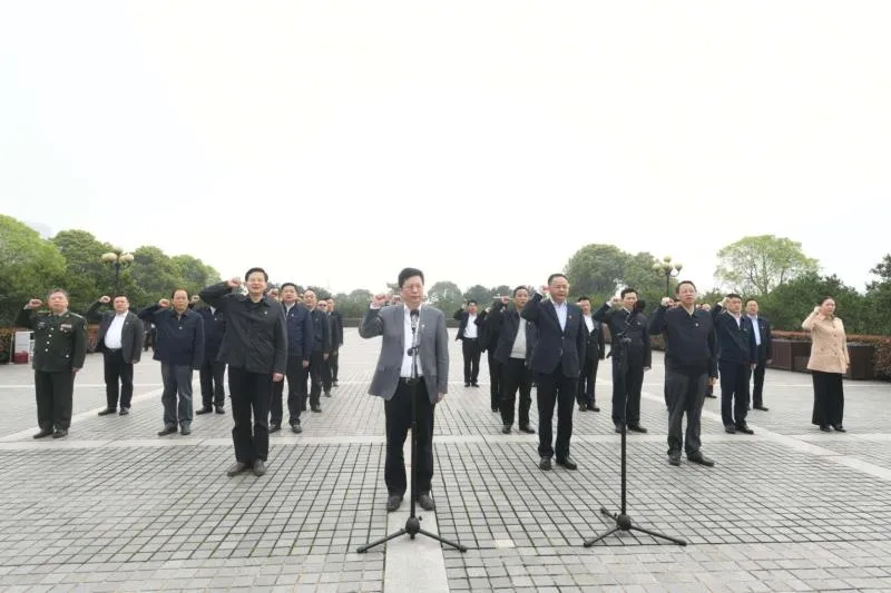 今日下午,省委常委、市委书记胡衡华带领党员领导干部在橘子洲头重温入党誓词。 周柏平 | 摄