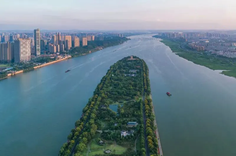 2018年航拍镜头中的橘子洲头。 长沙晚报摄影部 | 摄
