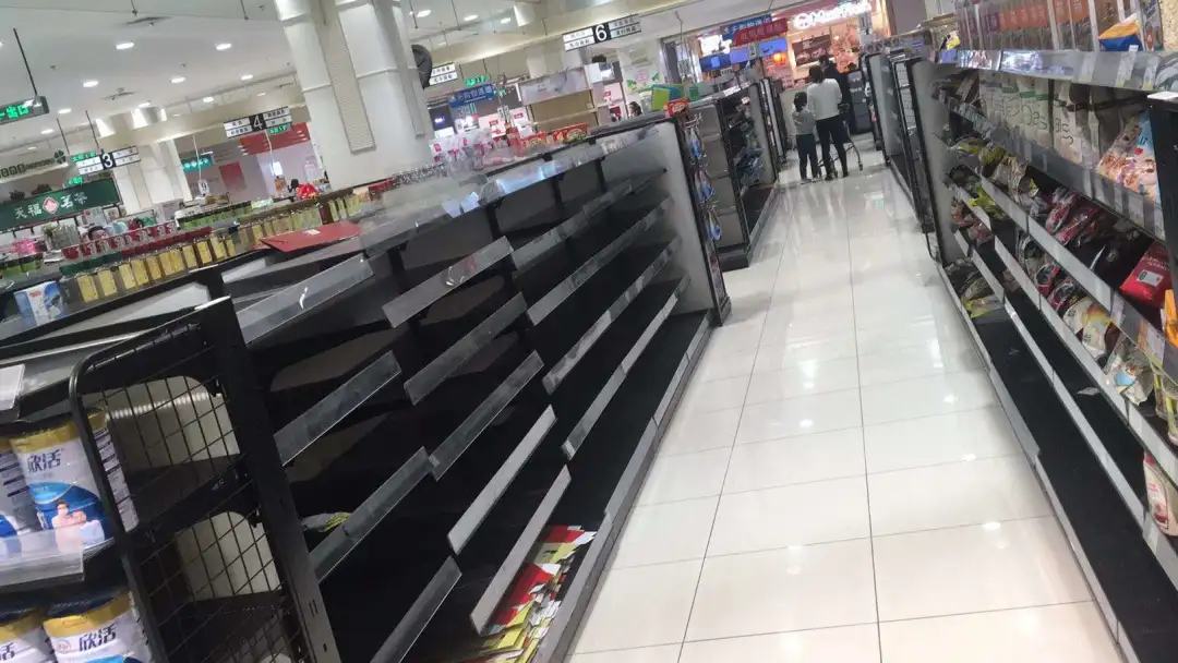 网友拍摄的平和堂奥克斯店,超市部分货架已清空。