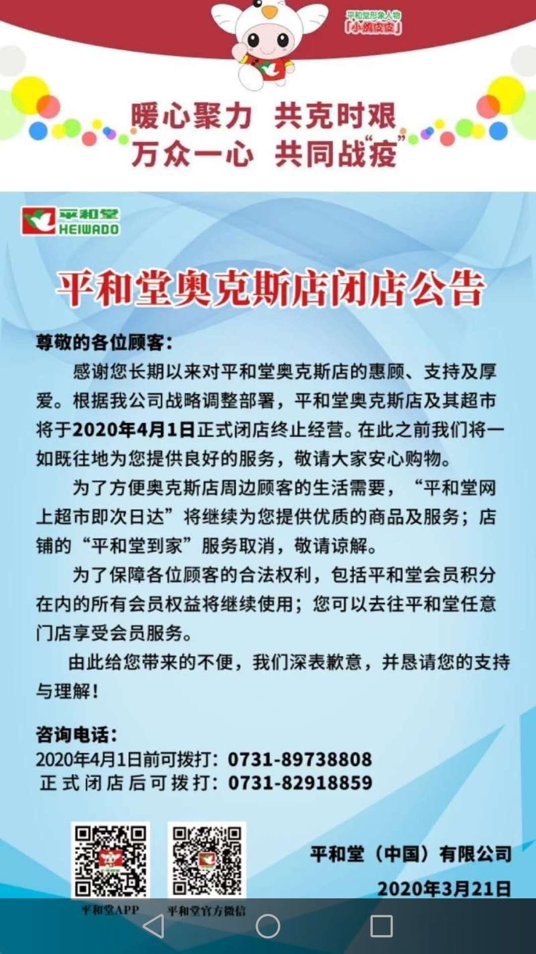 华声在线3月23日讯(三湘都市报·华声在线记者 朱蓉)平和堂奥克斯广场店未能如期迎接其开业7周年的生日。近日,平和堂奥克斯店张贴闭店公告,称根据公司战略调整部署,平和堂奥克斯店及其超市将于2020年4月1日正式闭店终止营业。