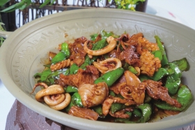 青辣椒炒鱿花。