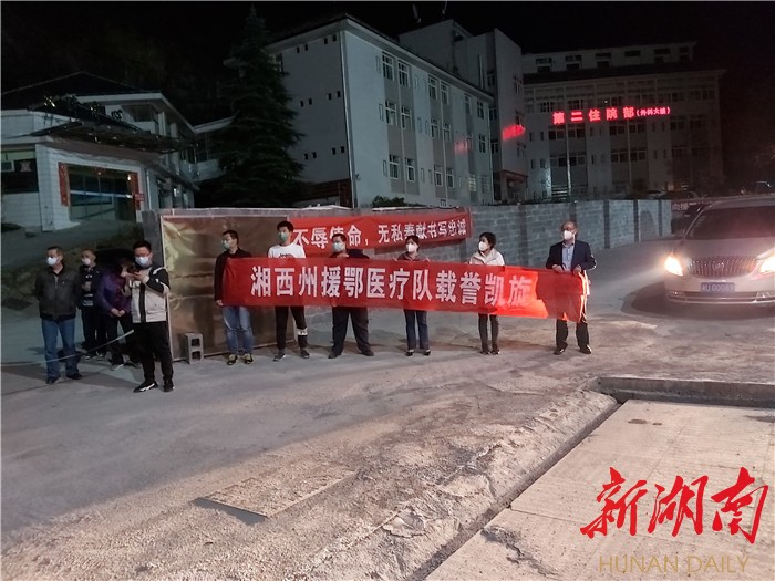 在新冠肺炎疫情面前,全国人民团结一心,众志成城,湘西儿女自然也不甘落后。2月15日,由湘西土家族苗族自治州人民医院、湘西州民族中医院的20名医疗工作者组成的支援湖北省武汉市新冠肺炎防治医疗队,于下午1点25分登车奔赴疫区“战场”。
