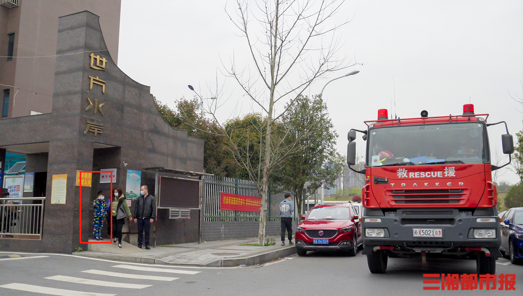 就在采访结束之即,记者在小区门口拍下了一组照片,放大仔细看,竟然发现了一名穿着睡衣、戴着口罩的小男孩,虽然旁人都没注意,但孩子一直默默地向消防车敬礼,直至消防车离去。