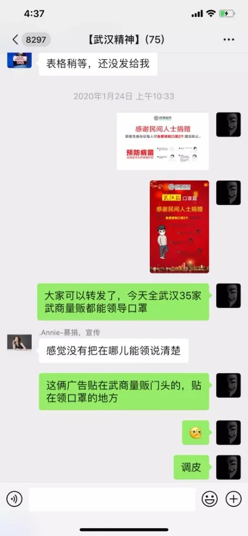 在武汉的大街小巷,流动着一支名叫“武汉精神”的行动小组,连日来筹集捐赠110万只口罩。该团队的志愿者已有300多人,他们大多来自武汉的大学生、干部职工、警察……
