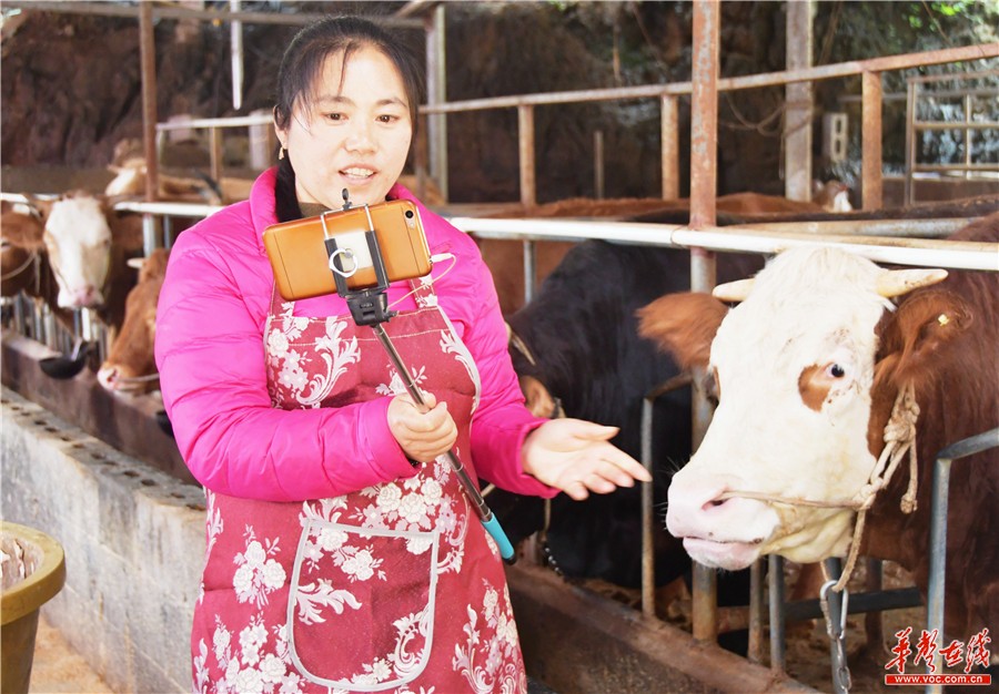 3月8日,江永县桃川镇大地坪村农民张丽通过网络与养殖户交流杂交黄牛养殖技术。近年,该县妇联联合农口部门组织专家到贫困村举办种植养殖技术培训班,让广大留守妇女发展特种种植业养殖业,既在家照顾老少,又能脱贫致富。田如瑞 周宁波 摄影报道
