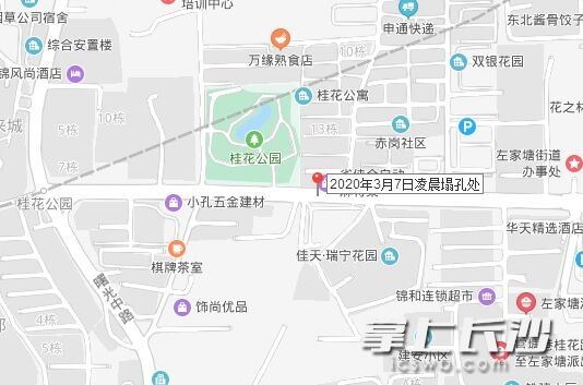 经现场调查,该处塌孔距离地铁3号线桂花公园站约350米,距离桂花公园站~阿弥岭站盾构区间约200米,均不在影响范围内。经市住建局质安站与附近地铁施工单位负责人现场勘验,初步判断塌陷与地铁施工无关,也不会对地铁车站及隧道产生影响。
