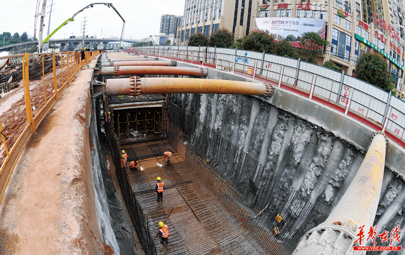 3月5日,芙蓉大道快速化改造长沙段(非涉铁段)项目南湖路下穿地道节点,施工人员正在进行雨水箱涵施工。该项目于2月13日实现全线复工,施工方湖南路桥集团在严抓防疫的同时,调配了60多名施工人员投入到项目施工难度最大的节点工程——南湖路下穿地道。预计本月将完成雨水箱涵施工,随后开启围护桩施工。湖南日报·华声在线记者 田超 通讯员 李惠敏 摄影报道