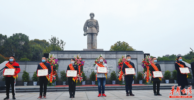 3月5日,湖南雷锋纪念馆塑像广场,长沙市望城区10位“学雷锋疫情防控最美志愿者”受到表彰。当天,该区举行2020年“3·5学雷锋纪念日”活动。活动现场,学雷锋先进集体、先进个人和疫情防控最美志愿者受到表彰,并发布了《关于加强学雷锋志愿服务,建设“志愿者之城”的实施方案》。该方案旨在健全长效机制,致力建设全国最具影响力的“志愿者之城”。湖南日报·华声在线记者 徐行 摄